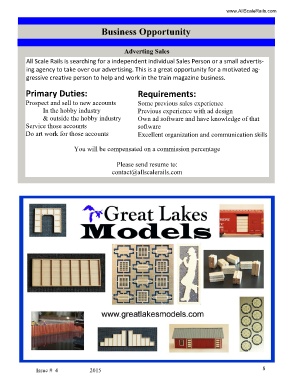 All Scale Rails is searching for a independent individual Sales Person or a small advertis-