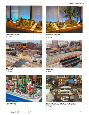 www.AllScaleRails.com Domrois Layout Domrois Layout Z Scale Z Scale Mantrak Mantrak N Scale N Scale Lego Display Lionel Railroad Club of Milwaukee O Scale Issue # 13 2017 57