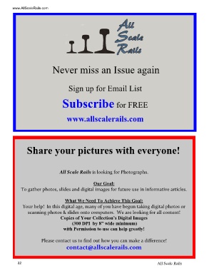 All Scale Rails is looking for Photographs.