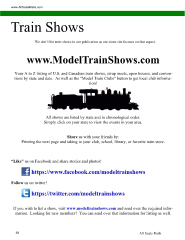 If you wish to list a show, visit www.modeltrainshows.com and send over the required infor-