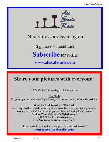 All Scale Rails is looking for Photographs.