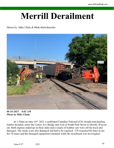 lumber derailed, under the Center Ave Bridge and west of South Park Street in Merrill, Wiscon-